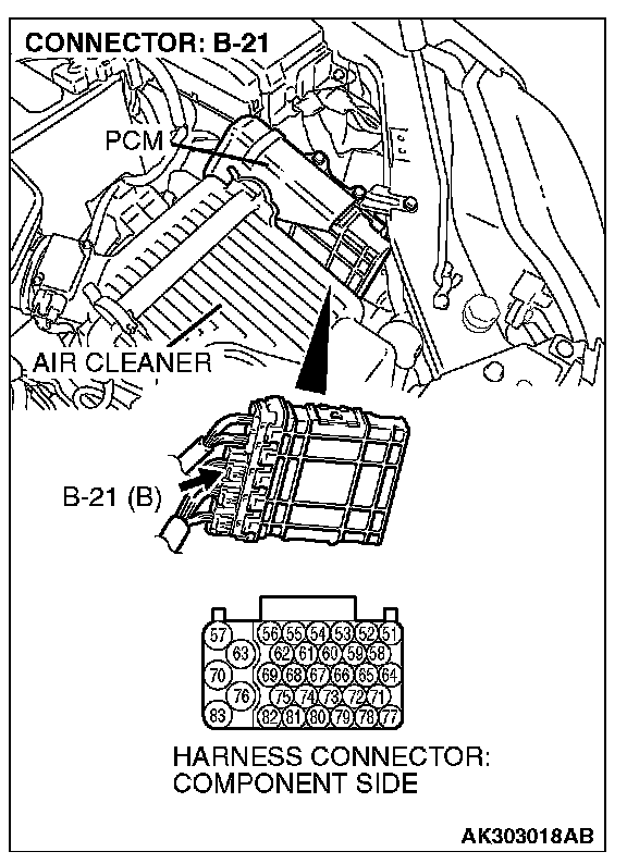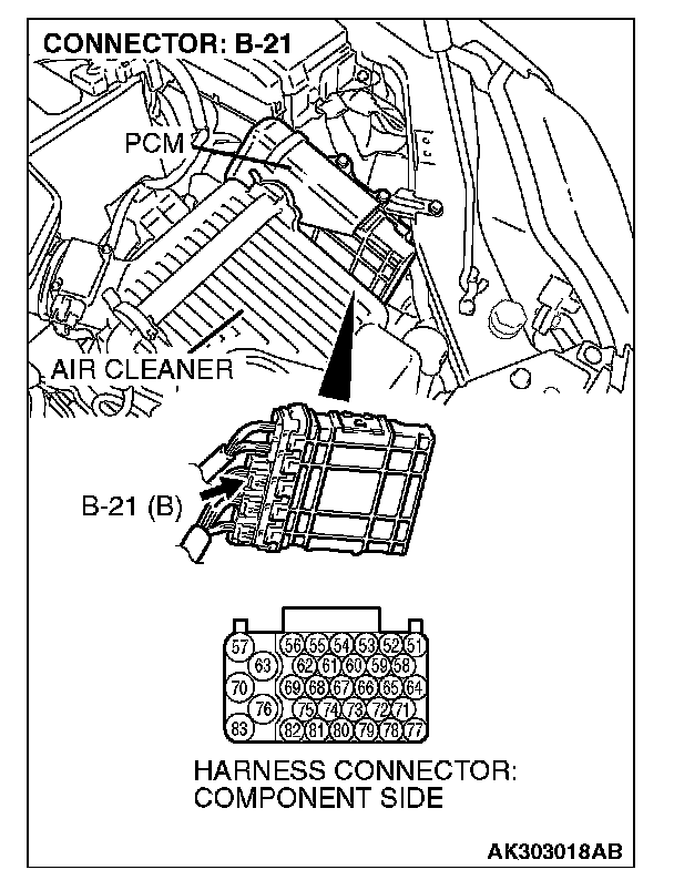 STEP 4. Check connector B-21 at PCM for damage.