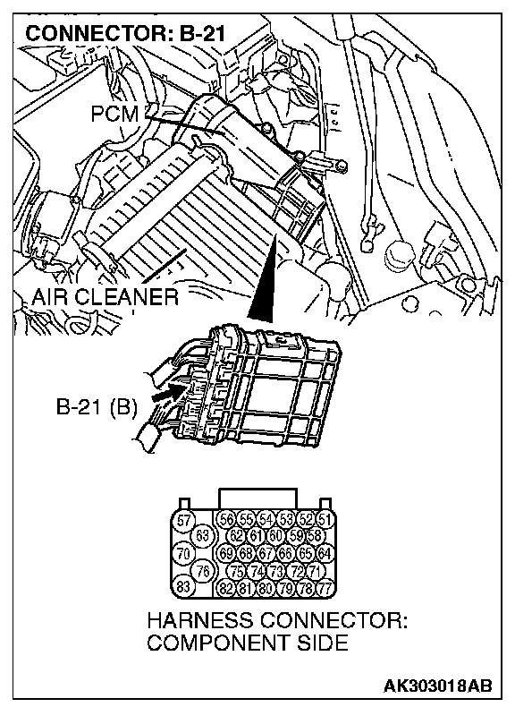 STEP 1. Check harness connector B-21 at PCM for damage.