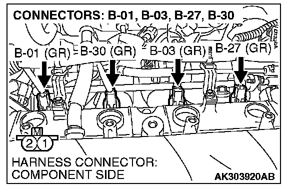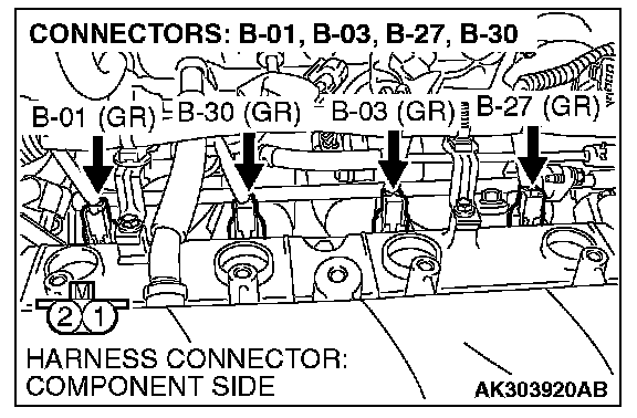 1. Disconnect the injector connector B-01, B-03, B-27 and B-30.