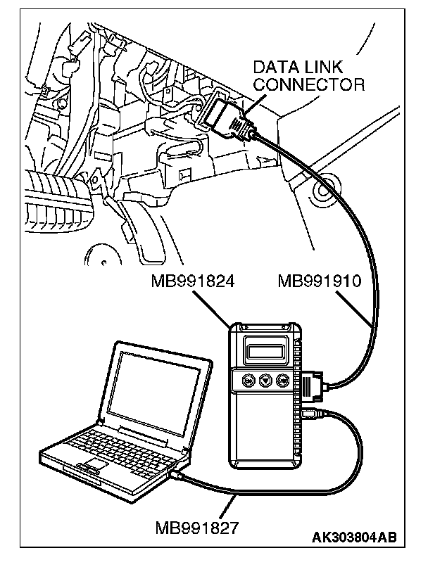 1. Connect scan tool MB991958 to the data link connector.