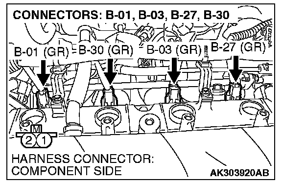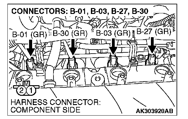 1. Disconnect the injector connector B-01, B-03, B-27 and B-30.