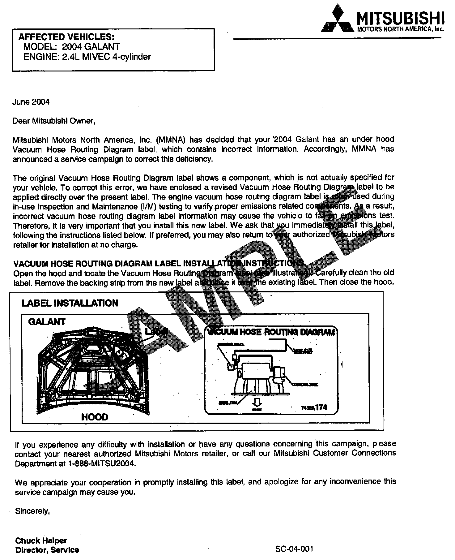 Recall - Incorrect Underhood Vacuum Hose Routing Label