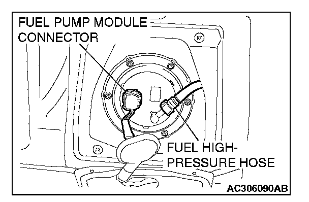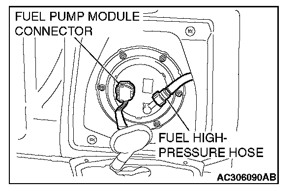 3. Disconnect the fuel pump module connector and fuel high-pressure hose.