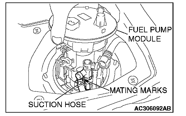 CAUTION: When withdrawing the fuel pump module from the fuel tank, be careful not to damage the module unit and the float.