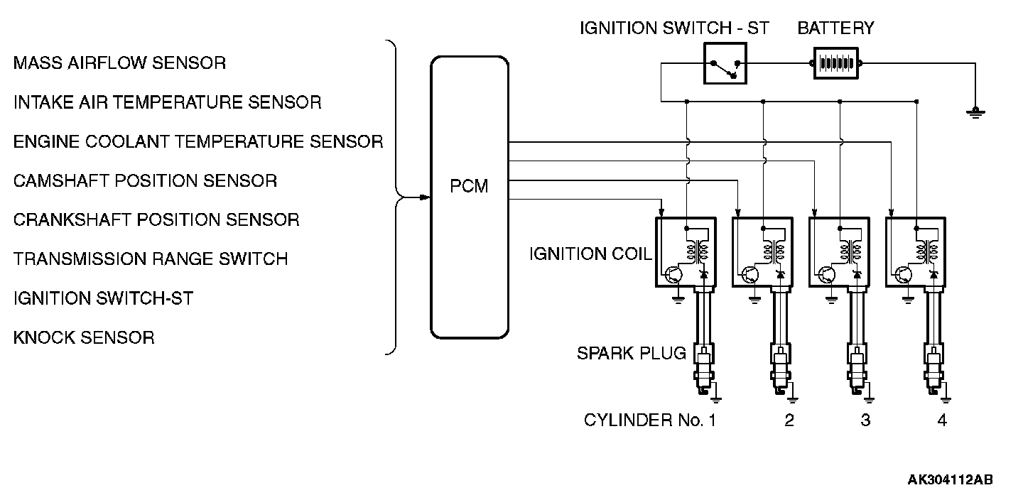 The PCM determines which ignition coil should be controlled by means of the signals from the camshaft position sensor which is incorporated in the camshaft and from the crankshaft position sensor which is incorporated in the crankshaft.