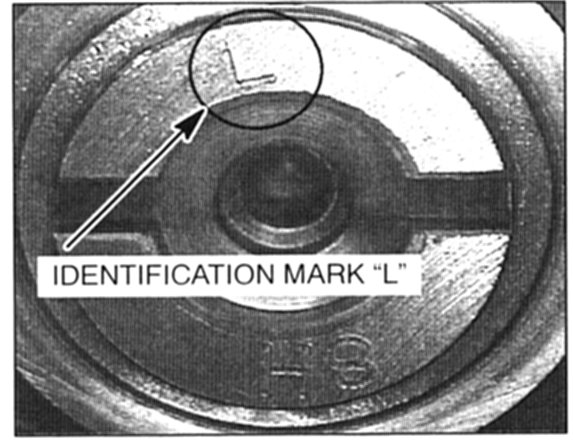 2. Replace the camshaft, using the part listed in the PARTS INFORMATION section of this bulletin. The new camshaft has an "L" identification mark.
