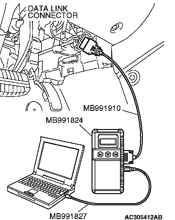 1. Connect scan tool MB991958 to the data link connector.