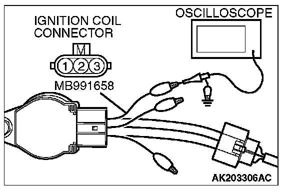 2. Connect the oscilloscope probe to ignition coil connector terminal No. 3.