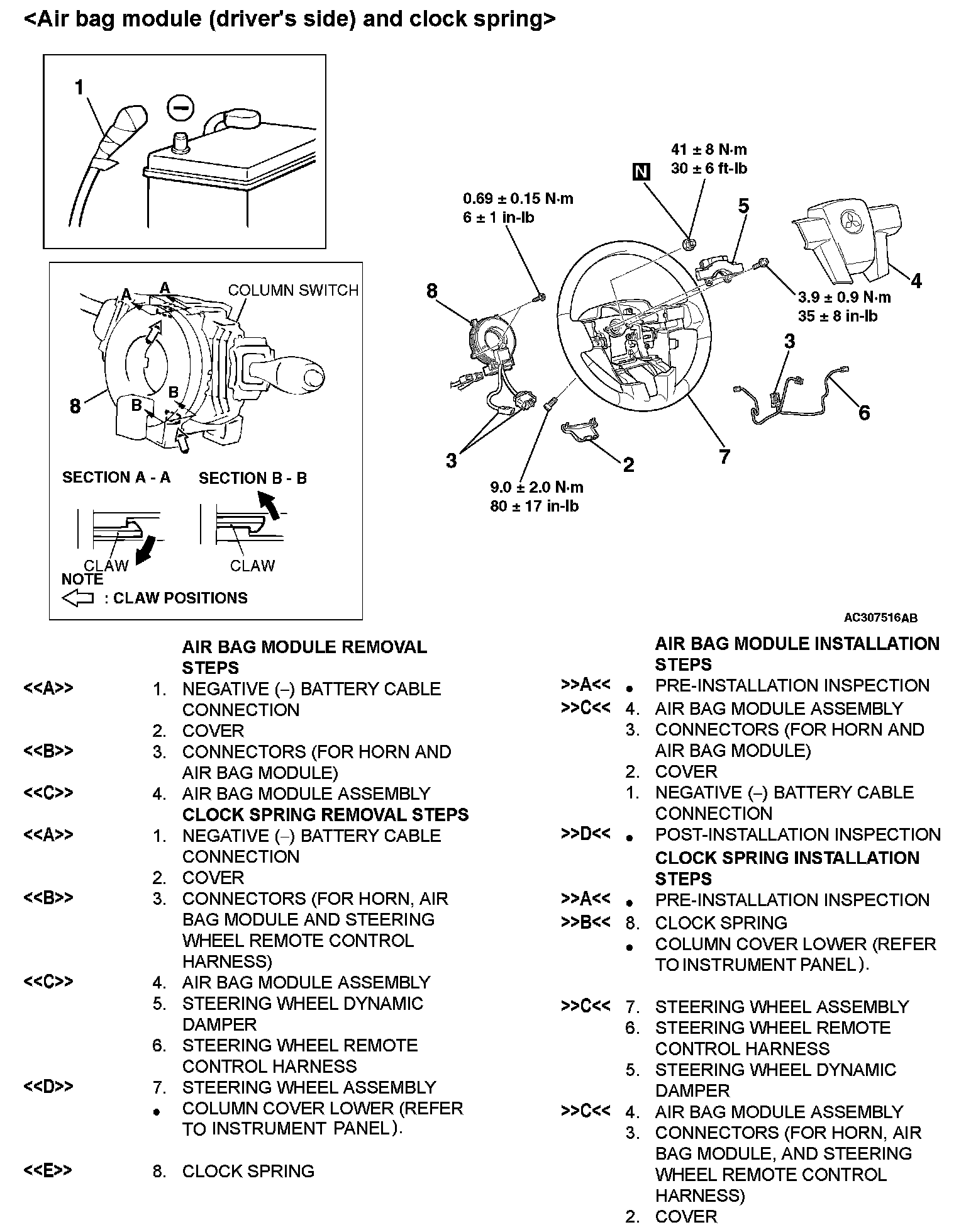 AIR BAG MODULES AND CLOCK SPRINGREMOVAL AND INSTALLATION