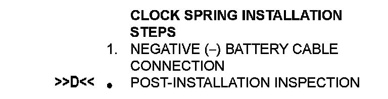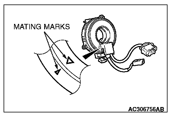WARNING: Ensure that the clock spring s mating marks are properly aligned. If not, the steering wheel may not rotate completely during a turn, or the flat cable in the clock spring could be damaged, This would prevent normal SRS operation and possibly cause serious injury to the driver.