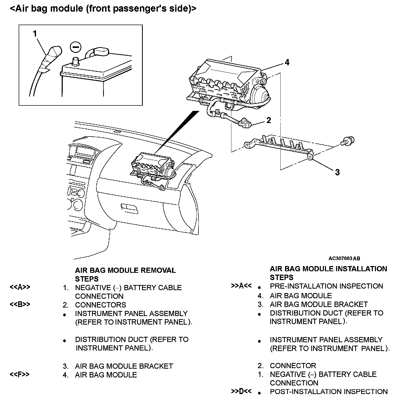 [[F]] AIR BAG MODULE REMOVAL (FRONT PASSENGER'S SIDE)