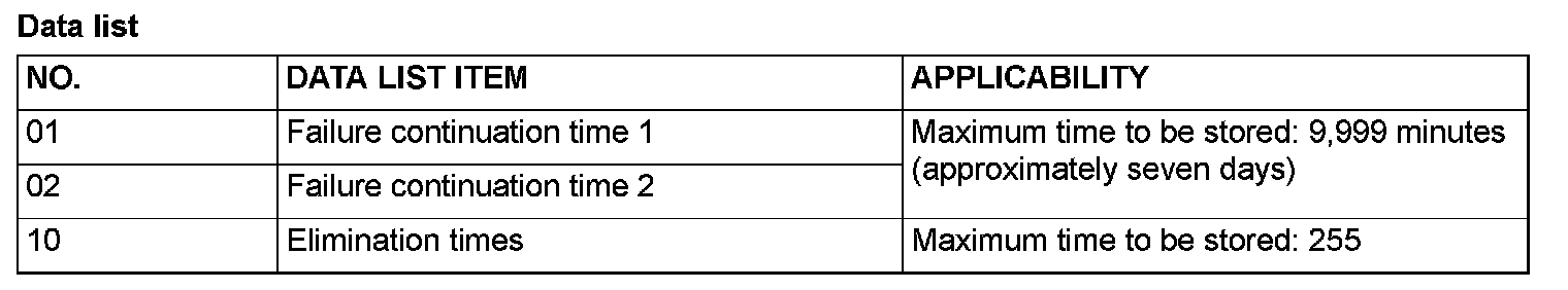 3. Read the data list (fault duration and how many times memories are erased), using scan tool MB991958.