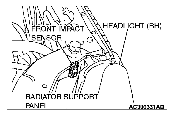3. Check the front impact sensor wiring harness for binding, check the connector for damage, and check the terminals for deformation.