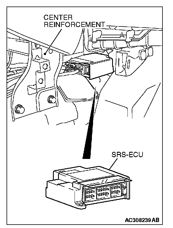 NOTE: If the battery power supply has been disconnected or disrupted by the collision, scan tool MB991958 cannot communicate with the SRS-ECU. Check the battery, then check and, if necessary, repair the front wiring harness and the instrument panel wiring harness before proceeding.