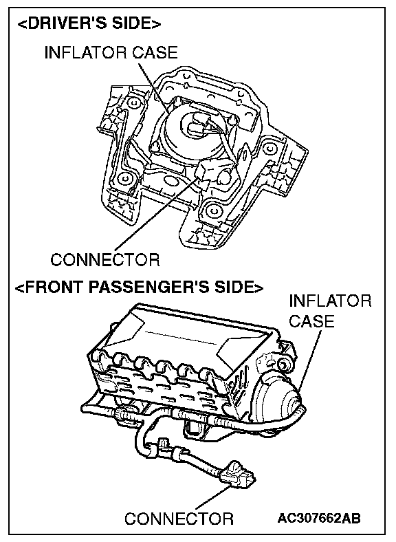 3. Check the air bag inflator case for dents, cracks or deformities.