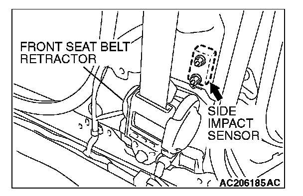 NOTE: The illustration shows the side impact sensor (RH). The position of the side impact sensor (LH) is symmetrical to this.
