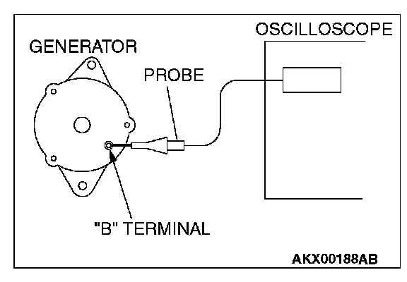 If the ripple height is abnormally high (approximately 2 V or more during idling), the wires between the generator "B" terminal and the battery have broken due to fuse blowing, etc. The generator is usually operating properly.