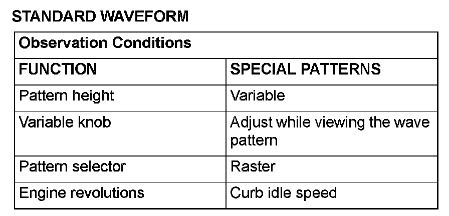NOTE: The size of the waveform patterns can differ greatly, depending on the adjustment of the variable knob on the oscilloscope.