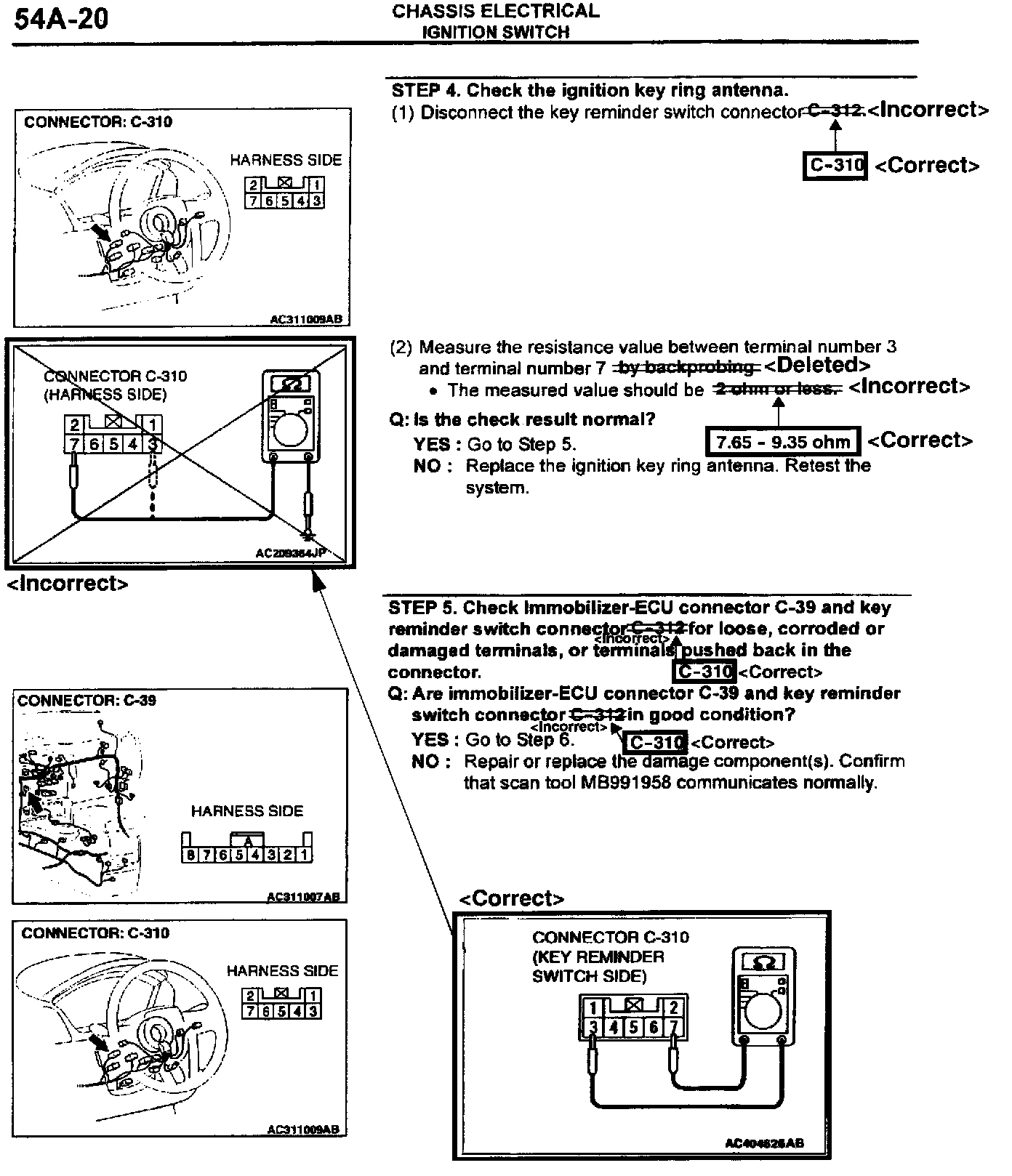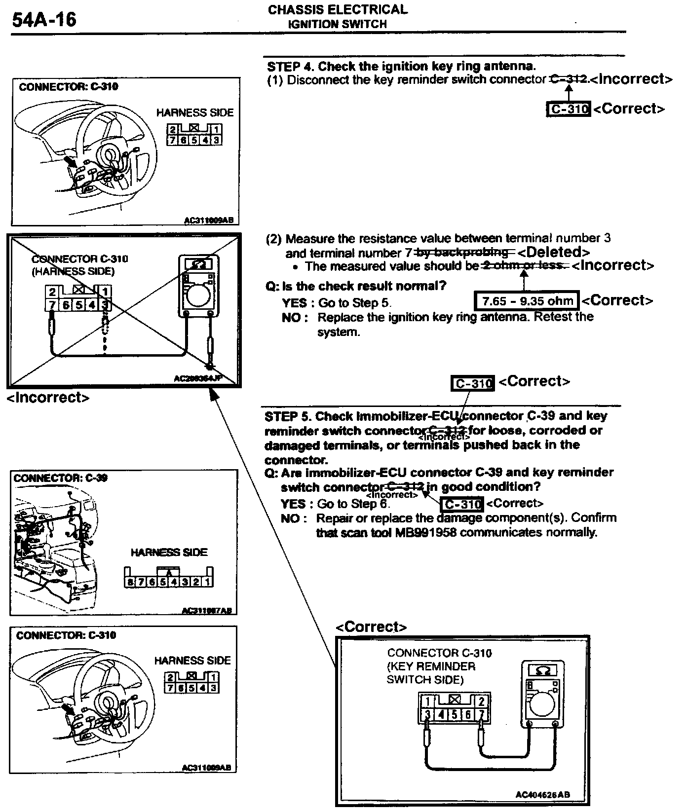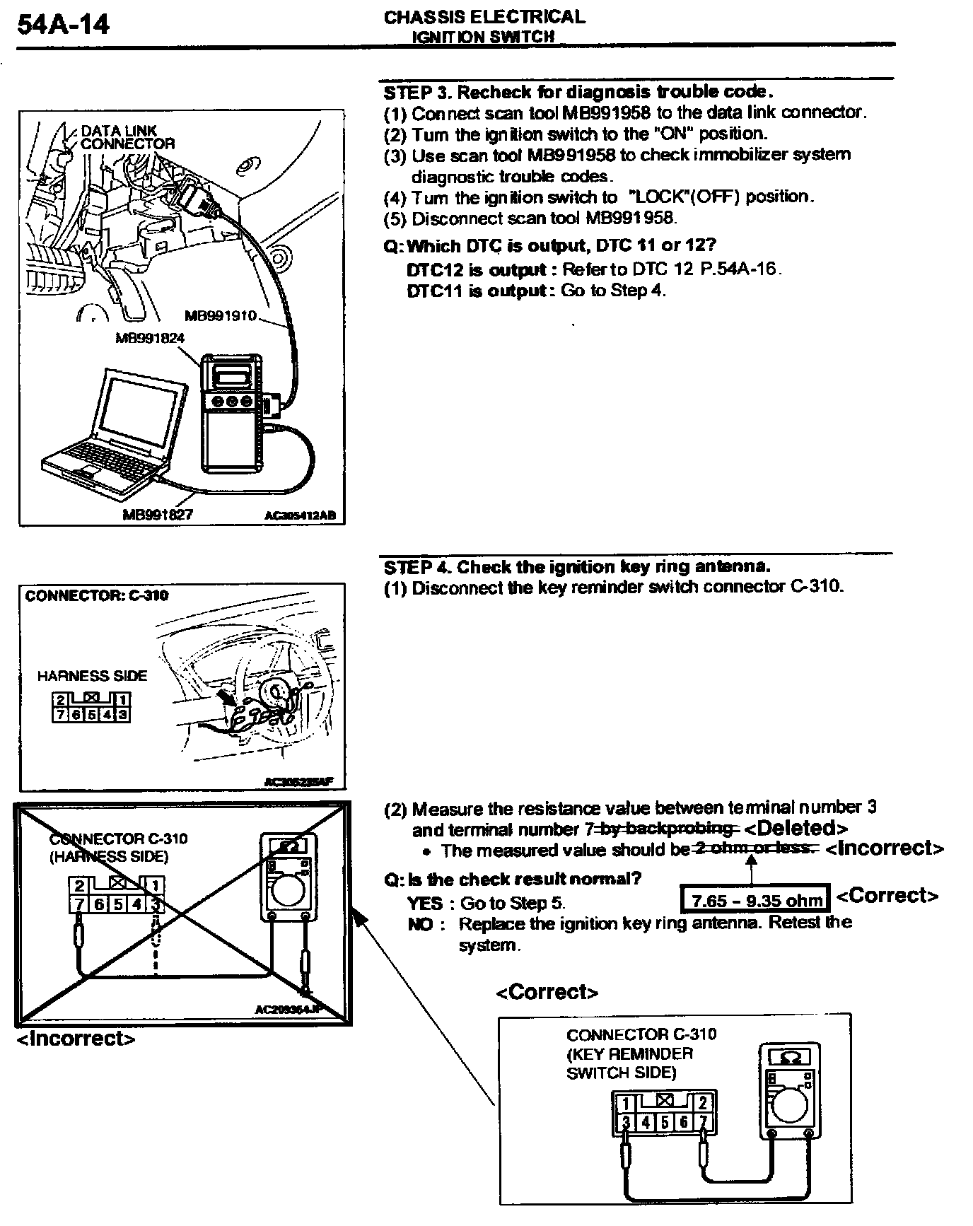 The inspection procedures for the ignition key ring antenna are incorrect in the affected service manual pages. This bulletin contains corrected procedures.