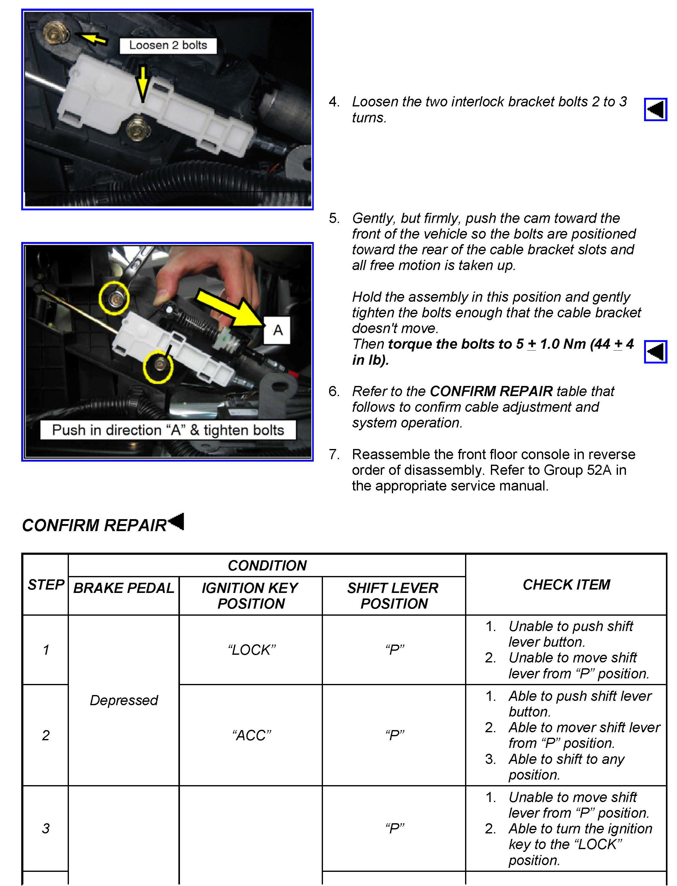 KEY INTERLOCK CABLE ADJUSTMENT