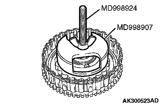 1. Set special tools MD998907 and MD998924 as shown in the illustration.