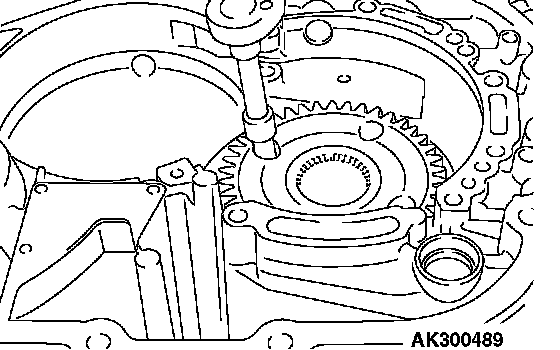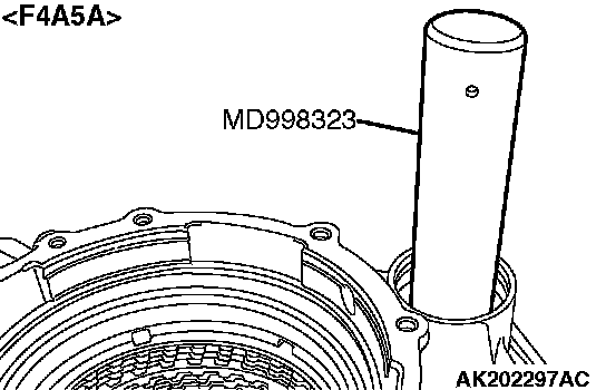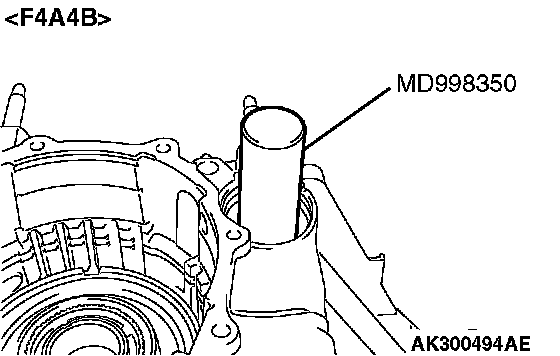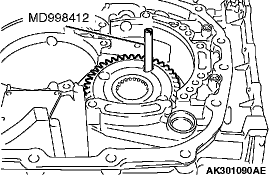 1. Install special tool MD998412 in the installation screw hole of the transfer drive gear bearing located in the transaxle case. Using this as a guide, install the transfer drive gear bearing and gear in the transaxle case.