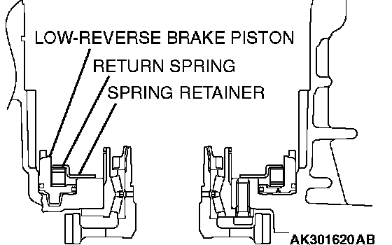 3. Install the low-reverse brake piston, return spring, and spring retainer into the transaxle case.