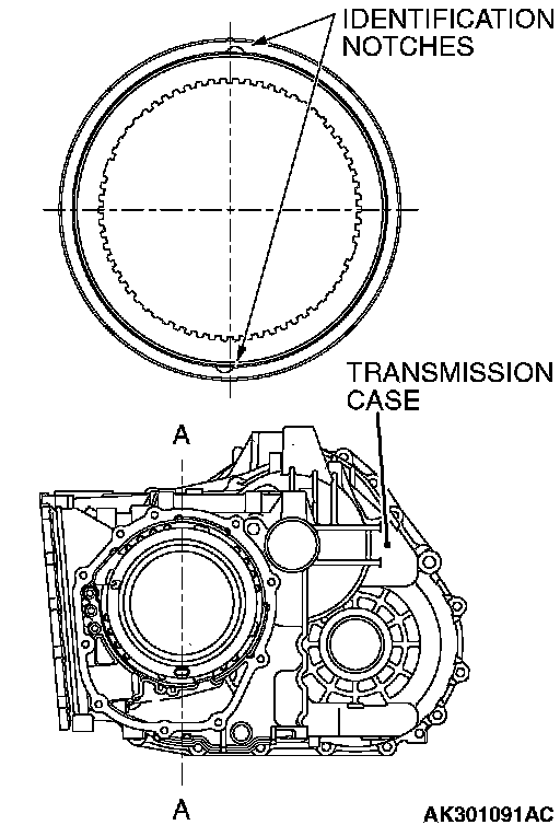 5. Check the placement of the identification notches in the one-way clutch inner race. Install the one-way clutch inner race to the transfer drive gear bearing so that the notches fall along the A - A line.