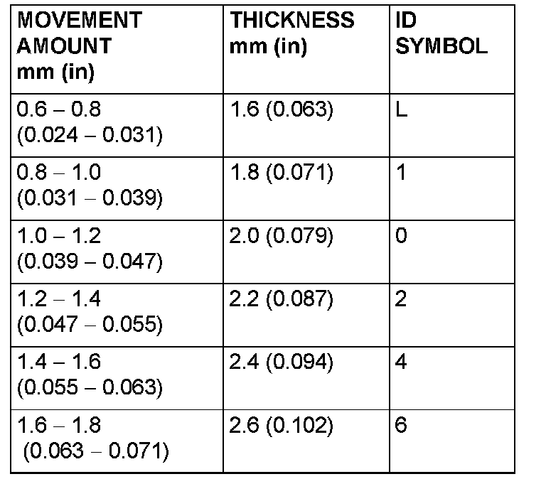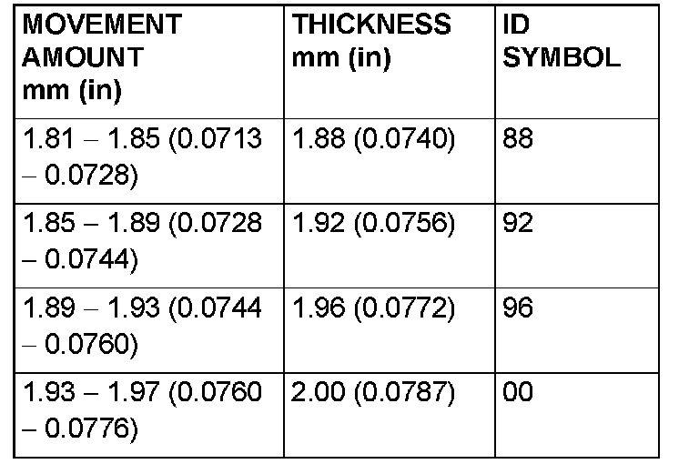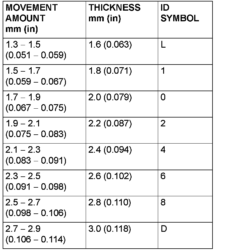 28. Select a spacer whose thickness corresponds to the measured amount of movement from the following table.