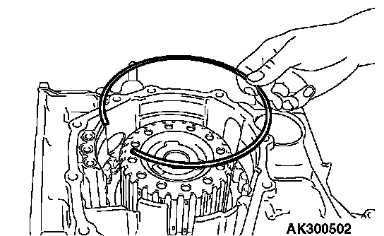 21. Install the snap ring into the groove of transaxle case output shaft bore.
