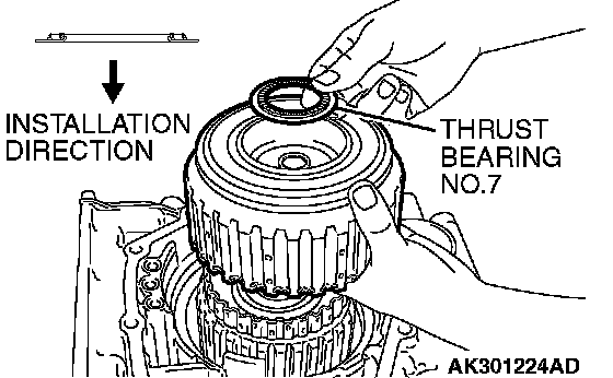 CAUTION: Be sure to install the thrust bearing in the correct direction as shown.