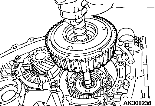 57. Hold the input shaft, and install the underdrive clutch.