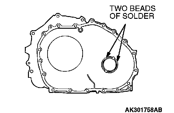 74. Place two beads of solder [each 10 mm (0.39 inch) in length, 3 mm (0.12 inch) in diameter] on the torque converter housing as shown in the illustration.