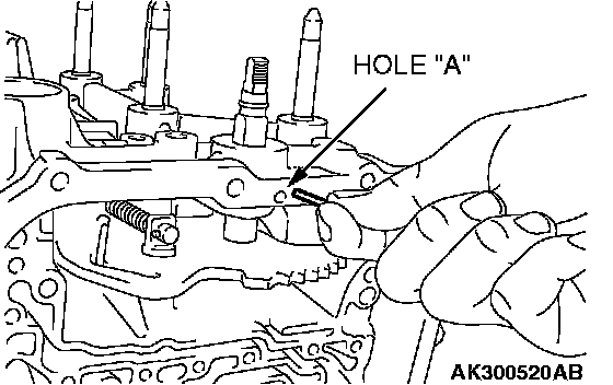 86. Align hole "A" with the groove in the manual control lever shaft. Insert the manual control lever shaft roller into hole "A."