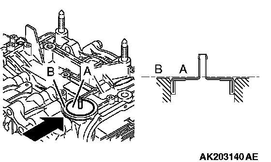103. Press Face "A" of the air breather to be even with Face "B" of the transmission case as shown in the drawing.