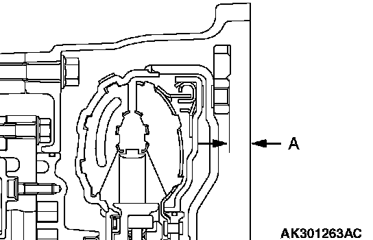 109. Install the torque converter, and align it with the oil pump so that the shown dimension "A" meets the reference value.