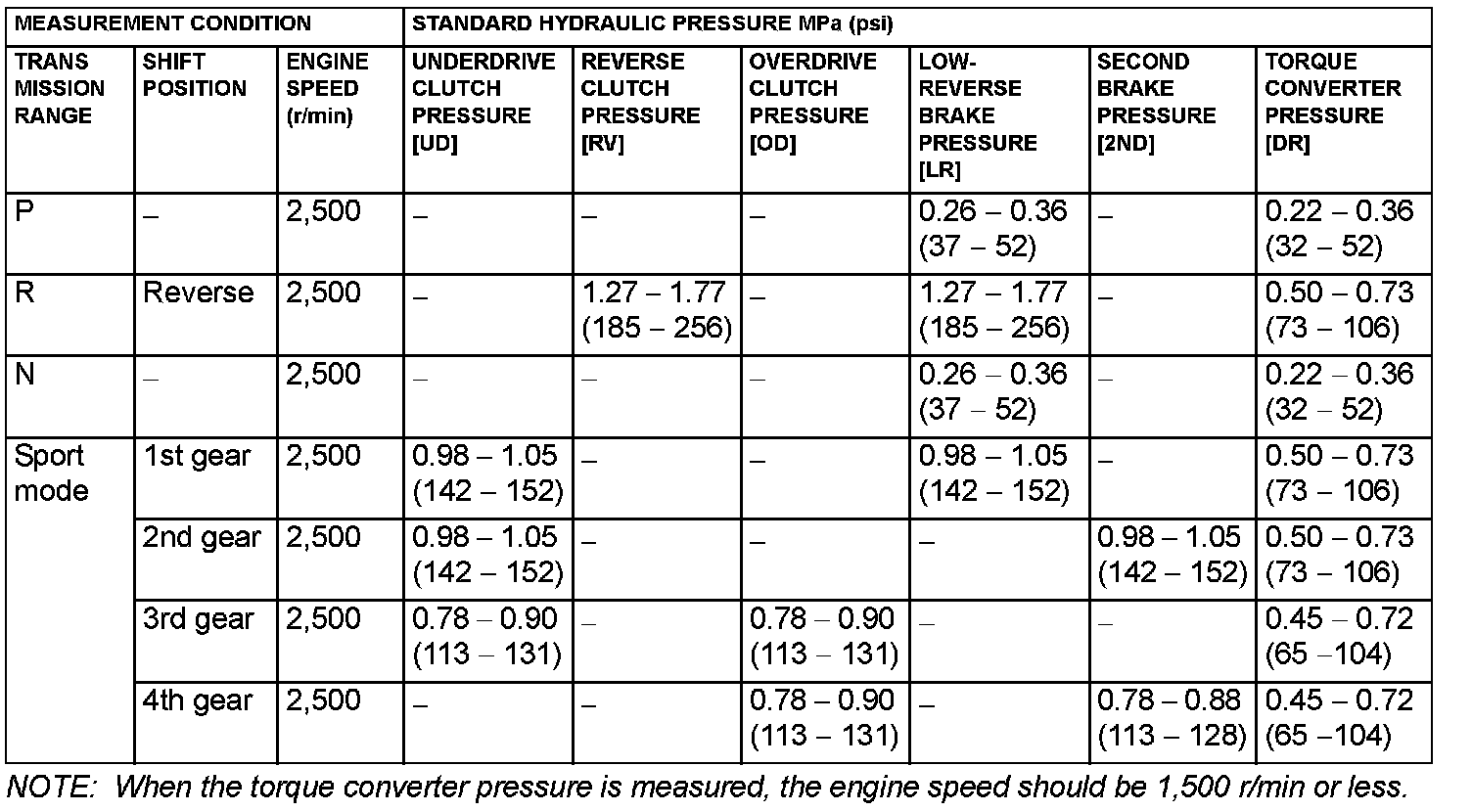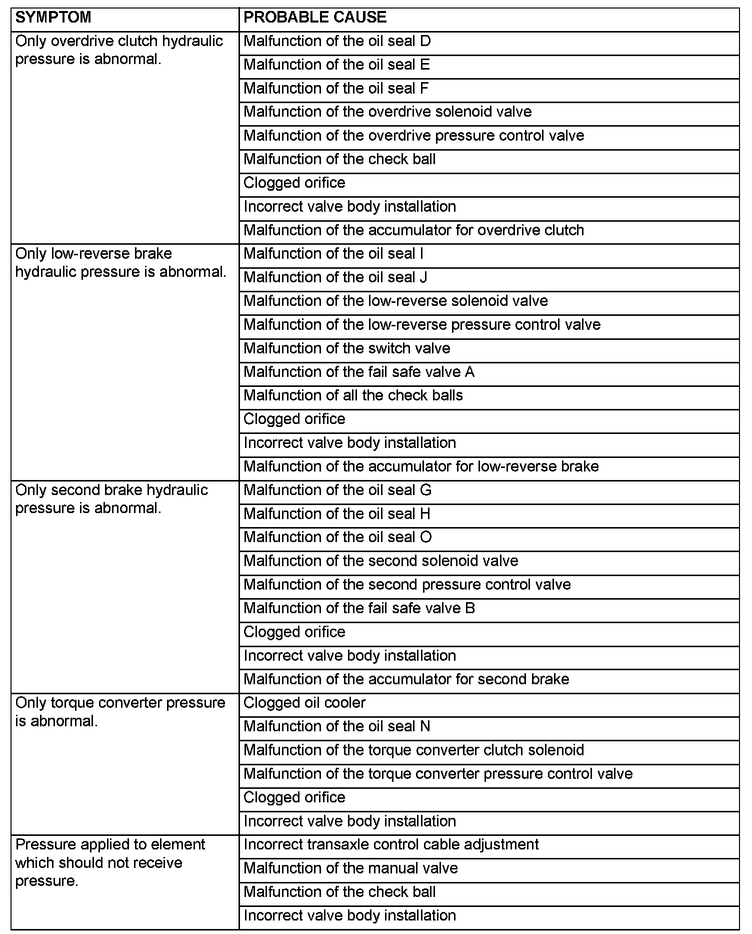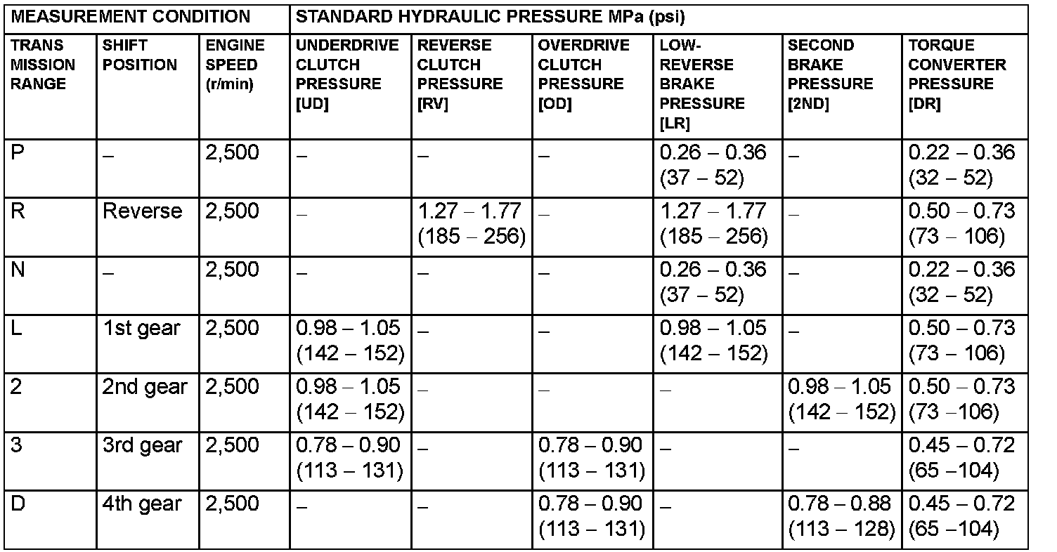 HYDRAULIC PRESSURE TEST DIAGNOSIS TABLE