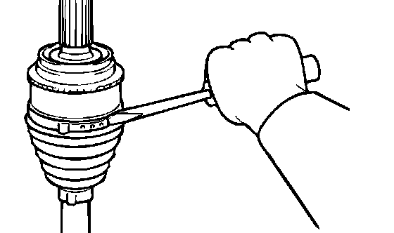 16. Check that the boot band is not sticking out past the place where it has been installed. If the boot band is sticking out, remove it and then repeat steps 13 to 15, using a new boot band.