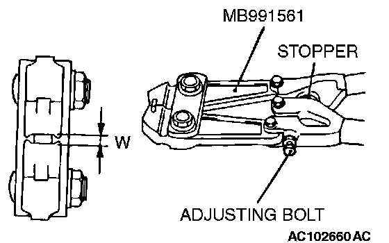 5. Turn the adjusting bolt on special tool MB991561 so that the size of the opening (W) is at the standard value.