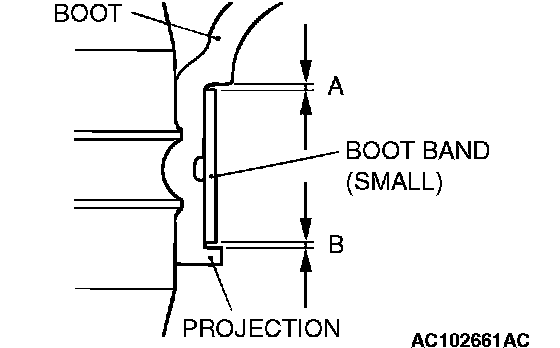6. Position the BJ boot band (small) so that there is even clearance at either end (A and B).