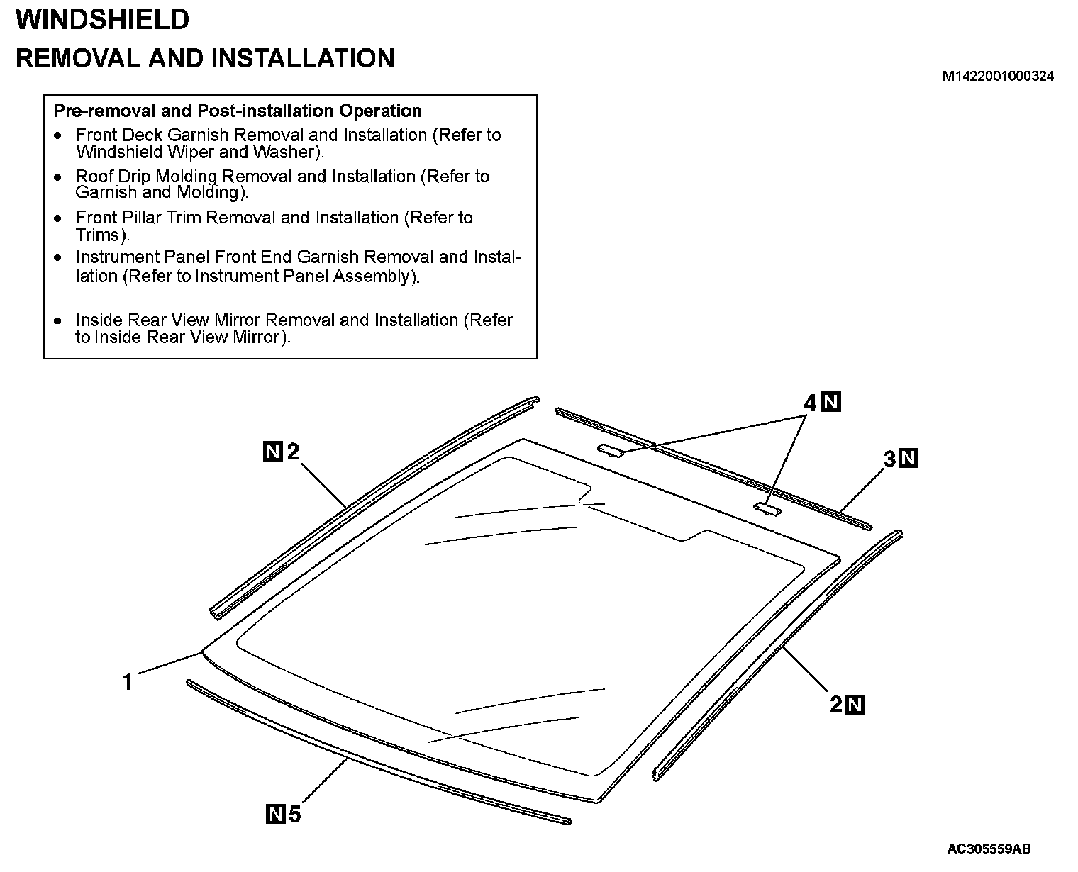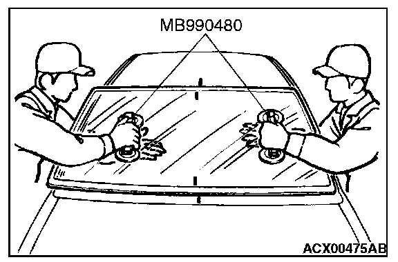 1. When replacing the windshield, temporarily set the windshield against the body, and place a mating mark on the windshield and body.
