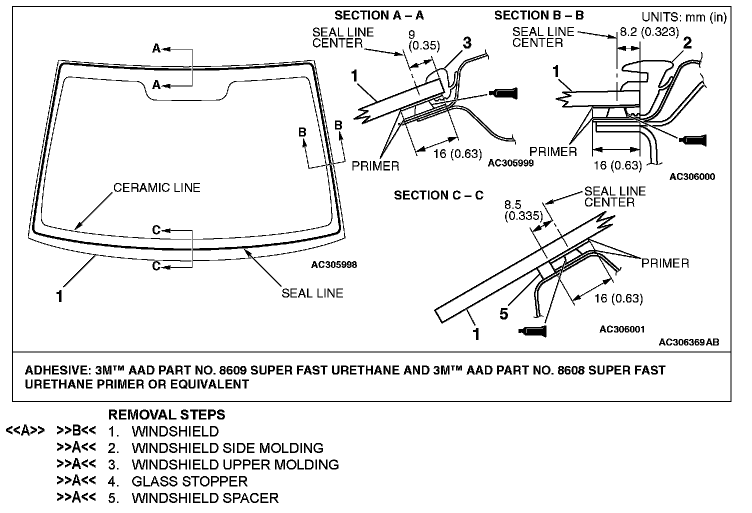>>A<< WINDSHIELD SPACER/GLASS STOPPER/WINDSHIELD UPPER MOLDING/WINDSHIELD SIDE MOLDING INSTALLATION