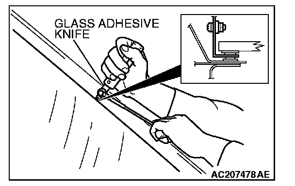 CAUTION: Inserting the glass adhesive knife too deeply into windshield adhesive may damage windshield.