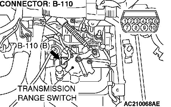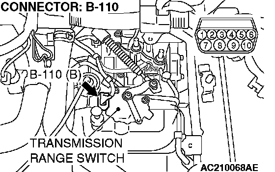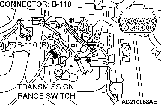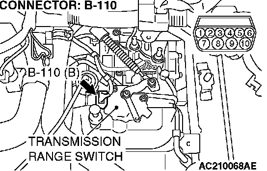 STEP 2. Check transmission range switch connector B-110 for loose, corroded or damaged terminals, or terminals pushed back in the connector.