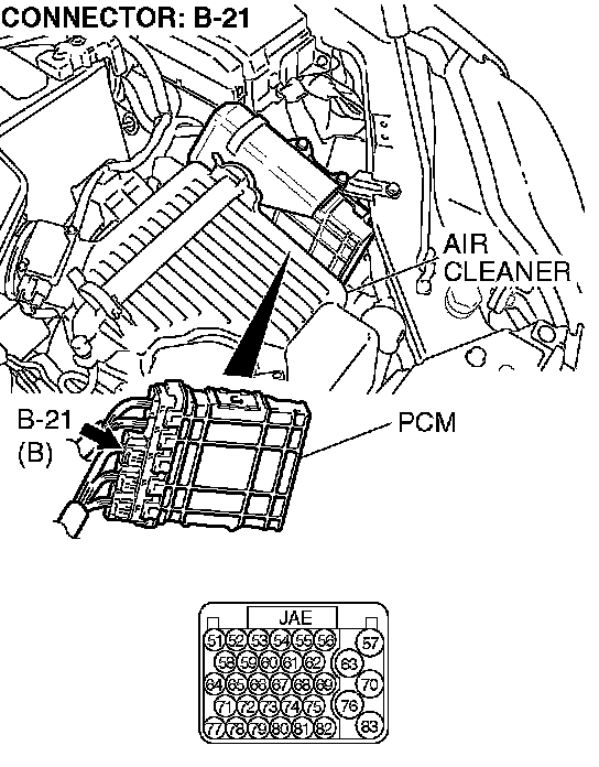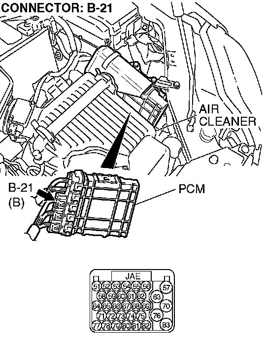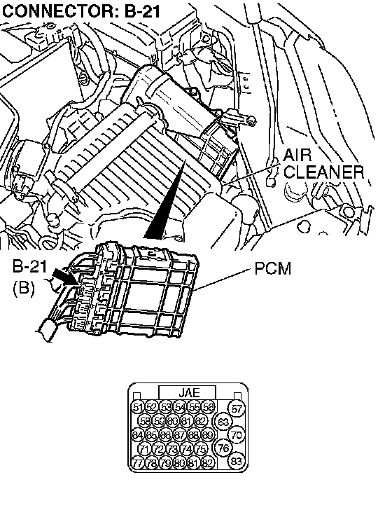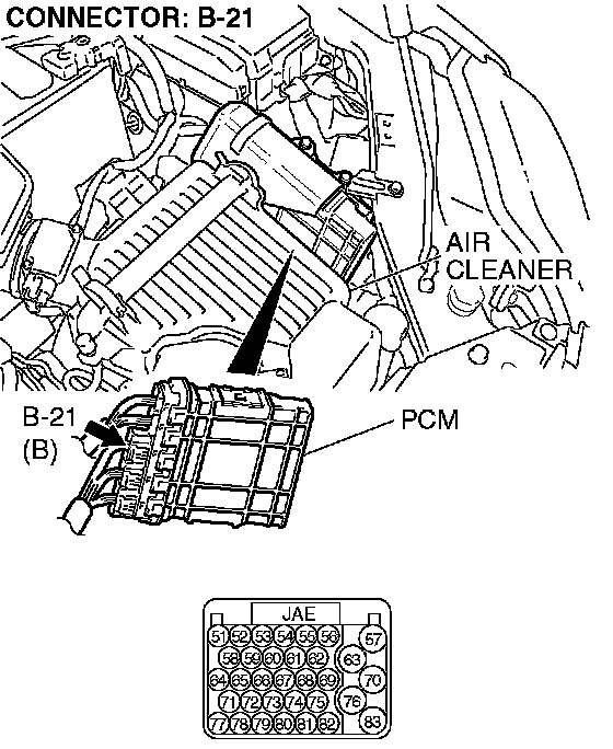 STEP 3. Check PCM connector B-21 for loose, corroded or damaged terminals, or terminals pushed back in the connector.