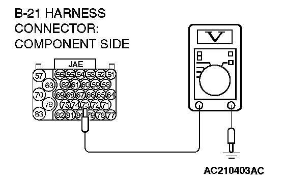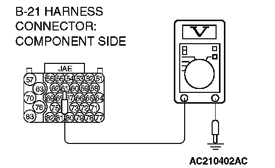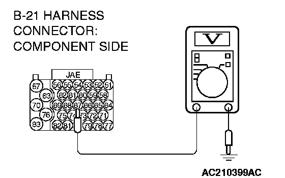 STEP 4. Measure the transmission range switch output voltage at PCM connector B-21 by using check harness special tool MB991923. ("P" position.