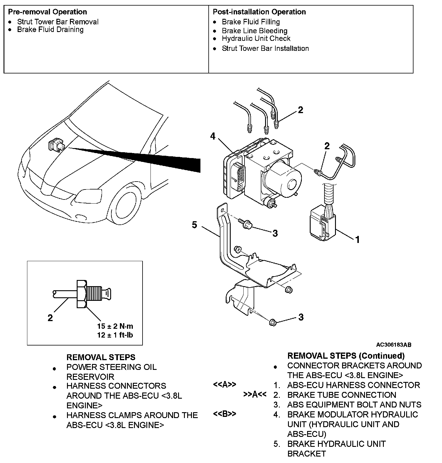 <> BRAKE MODULATOR HYDRAULIC UNIT (HYDRAULIC UNIT AND ABS-ECU) REMOVAL