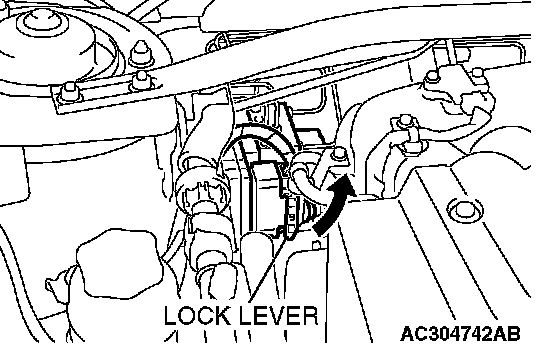 Move the lock lever of the ABS-ECU connector as shown in the illustration, and then disconnect the harness connector.