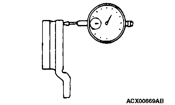 3. Place a dial gauge approximately 5 mm (0.2 inch) from the outer circumference of the brake disc, and measure the run-out of the disc.