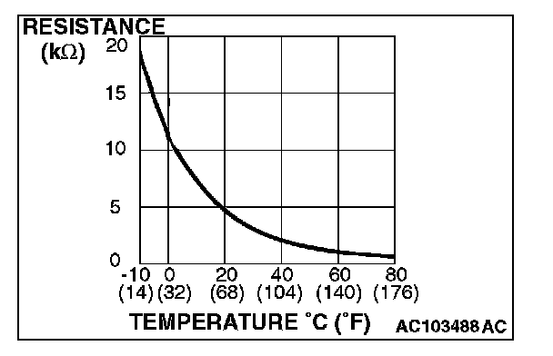 INTERIOR TEMPERATURE SENSOR CHECKWhen the resistance between the sensor terminals is measured under two or more temperature conditions, the resistance should approximately satisfy the illustrated values.